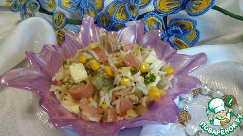 Рис, тунец и сосиска., а еще и сыр Ядерная смесь.