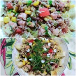 Но, несмотря на это салат получается сытный, но не тяжёлый.Тунец-рыбка, сыра-чуток совсем ,а в рисе 100кк.