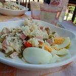 И что удобно: так как салат без майонеза, (а итальянцы себя берегут и заправляют салаты преимущественно оливковым маслом), то его удобно брать на природу, заправить можно прямо там.
