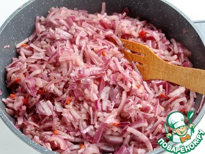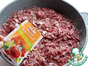 Когда жидкость практически выпарится добавьте к луку пакетик квиттина, перемешайте массу и прогрейте её 5 минут.