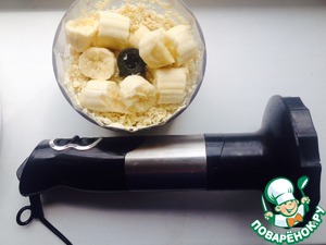 Смешайте в блендере тофу, банан, муку и разрыхлитель. У меня разрыхлителя не было, в принципе и без него получилось вкусно и пышно.