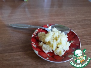 Отварить картофель до готовности и растолочь его в пюре ( без масла и без молока). Отмерить 2 ст. л. с небольшой горкой.