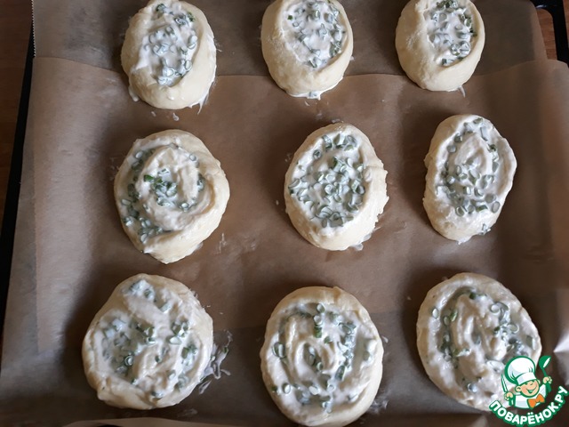 Рецепт «Булочки с зелёным луком и сметаной»: