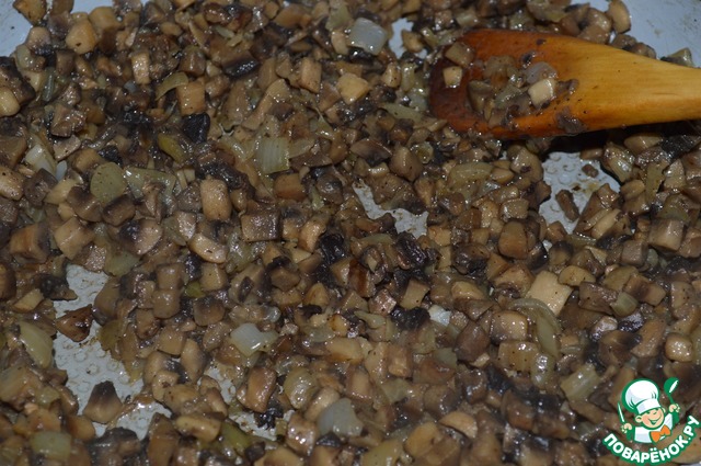 Добавить нарезанные кубиком шампиньоны и жарить до готовности.