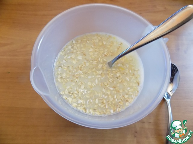 Насыпала овсяные хлопья грубого помола. Дала им разбухнуть немного.