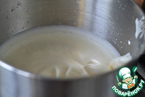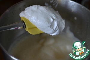 В отдельной миске взбить белки с оставшимся сахаром до крутых пиков.