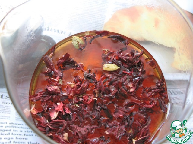 Затем добавить гибискус и раздавленные коробочки кардамона. -