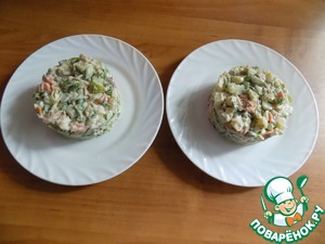 Я буду подавать салат каждому индивидуально и выкладывать его буду на тарелку в кольцо.