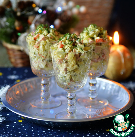 Салат "Оливье" с зелёной редькой