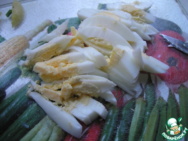 - Яйцо куриное (сваренные вкрутую) — 3 шт