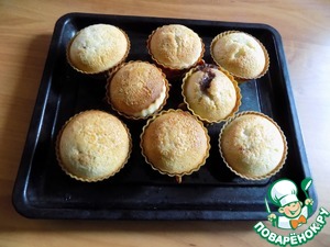 [+3]Пеклись долго (30 минут), поднялись, джем пробился наружу. К сожалению, после доставания из духовки опали и сдулись. В общем, съедобно, но на любителя.