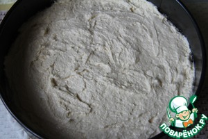 Форму застелить пергаментом и выложить готовое тесто. У меня форма диаметром 22 см.
