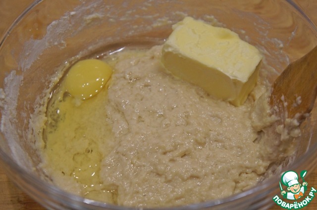 Добавить четвертое яйцо и растопленное масло. Тесто должно стать гладким, чтобы из него получился упругий шар.