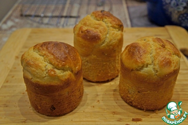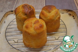 Когда тесто увеличится в объеме вдвое, распределить его по формочкам. Выпекать 12 минут, большую форму - 30 минут.