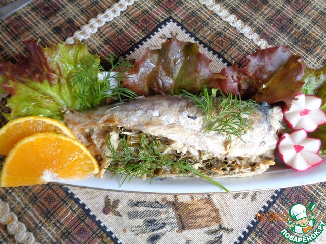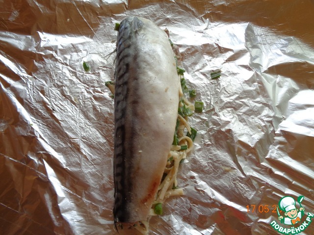 Рецепт «Запеченная скумбрия, фаршированная батуном»: