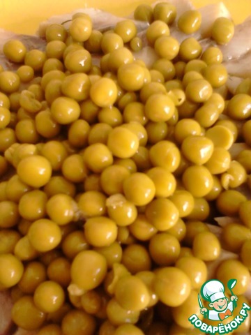 - Горошек зеленый (300 гр примерно) — 1 бан.