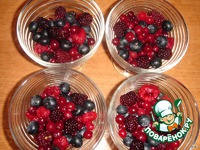 Разложите ягоды в 4 креманки или десертные чашки. У меня были замороженная малина и ежевика и свежие клюква и черника. |
