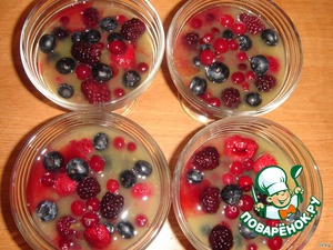 Ягоды нужно залить апельсиновым соком с желатином. |