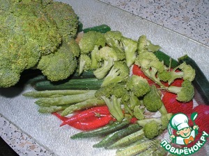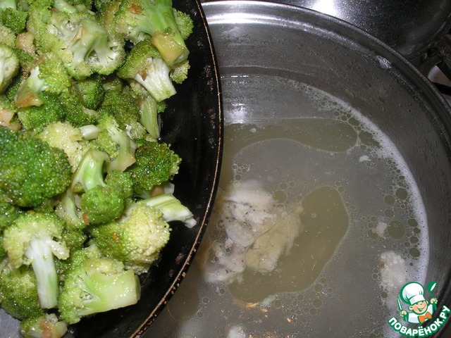 В случае отдельного приготовления молодого картофеля, можно сразу приступать к перекладыванию обжаренной брокколи в кипящий бульон. -