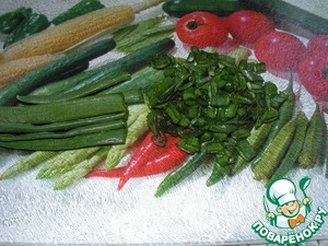 - Перец болгарский (зелёного цвета, важно для гармонии цвета) — 1 шт