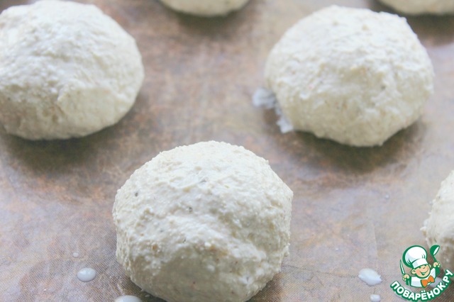 Мокрыми руками делам шарики и выкладываем на противень. -