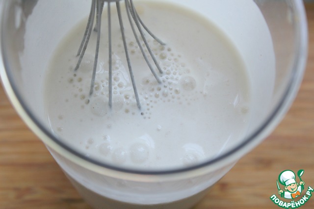 Не выключая блендера, тонкой струйкой влить желатин под венчик и взбивать пару минут.