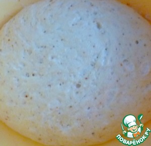 В емкость высыпаем просеянную муку, дрожжи, вливаем теплую воду и замешиваем тесто - месим минут 10.