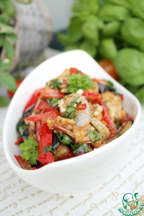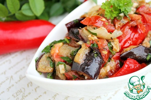 Предлагаю несложный рецепт салата из баклажанов и перца. Блюдо готовится недолго, особых усилий не требует. Результат вас непременно порадует!