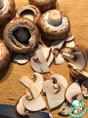 - Шампиньоны (Я использовал портабелло, они вкуснее шампиньонов. В списке таких грибов нет.) — 400 г