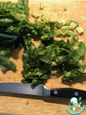 Нарезаем салат (у меня кэйл). Разбиваем в отдельную миску яйца, добавляем соль и перец, перемешиваем их до омлетного состояния, пробуем на вкус, доводим. Смесь должна быть немного пересолена - чуть-чуть, с учетом объема овощей.