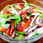 Предлагаю из свежих овощей салат. Все очень просто. Соус с ноткой трюфеля, бальзамического уксуса и кедровых орешек.