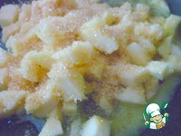 Пока подходит тесто, делаем начинку. На сковороде растопить 25 гр сливочного масла, выложить яблочные кубики, посыпать 2-3 ст л коричневого сахара и протомить, начинку остудить, отцедить яблоки. |