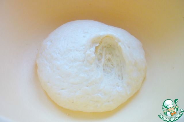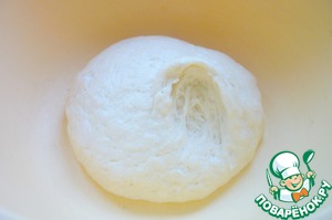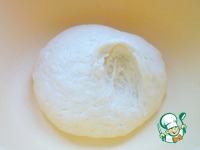 Тесто подошло. Тесто делим пополам. Одну половину делим на 3 части -делаем 3 булочки. |