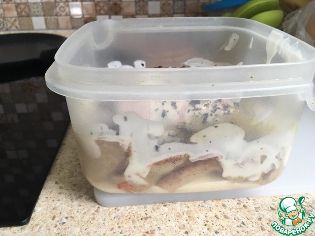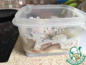 - Сыворотка (Сыворотка творожная: скисшее молоко ставим при комнатной температуре на пару дней, далее в емкости для микроволновки ставим на средней мощности до 10 мин, процеживаем. Творог и сыворотка готовы.) — 300 г