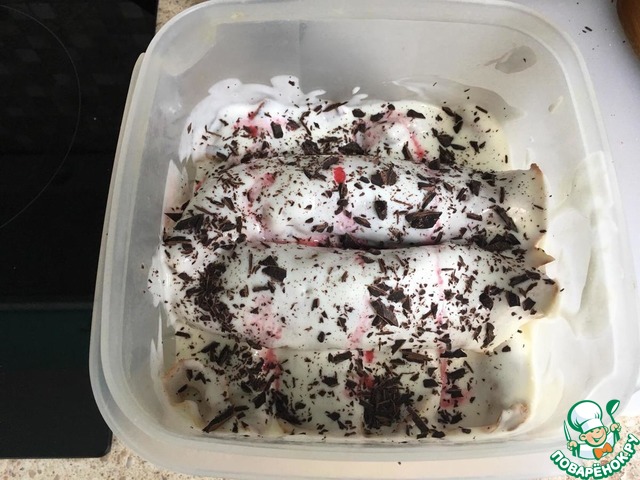 Украшением я выбрала порубленный ножом горький шоколад и чуть сока от вишневой начинки (с сахаром).