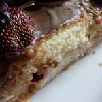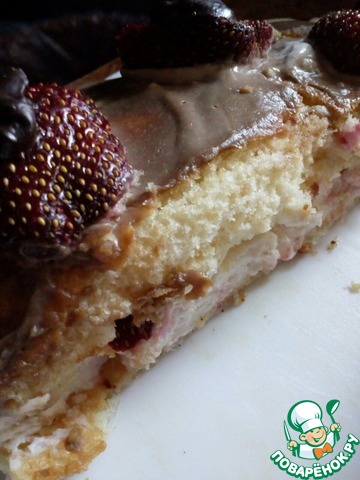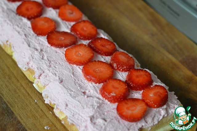 Клубнику нарезать на кружочки, Выкладываем на крем. -