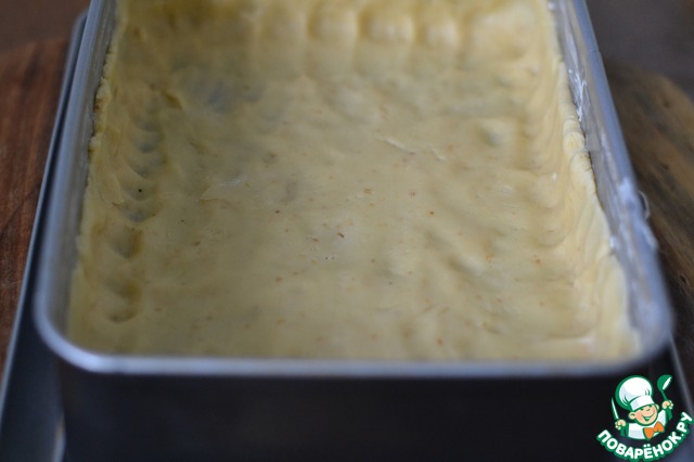Распределяем тесто по всей поверхности, формируя высокие бортики. -