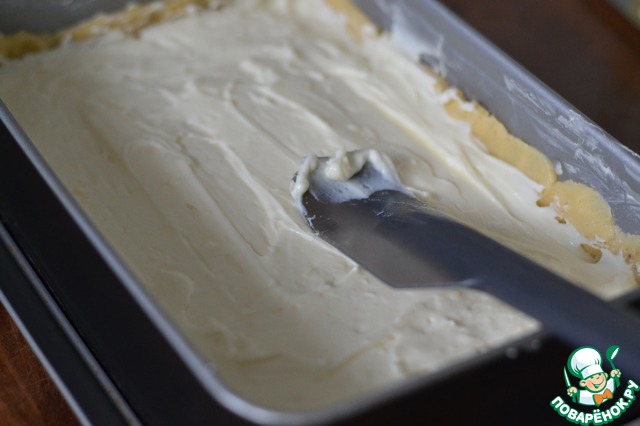 Выкладываем творожную начинку. Разровнять лопаткой.