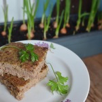Когда суфле немного остынет, нарезать на порционные кусочки и подавать теплым со сметаной или любыми соусами на Ваш вкус. Я подавала с зеленью и овощным салатом.