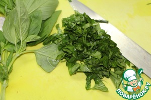 • У базилика удалить стебли, листья мелко нарезать.