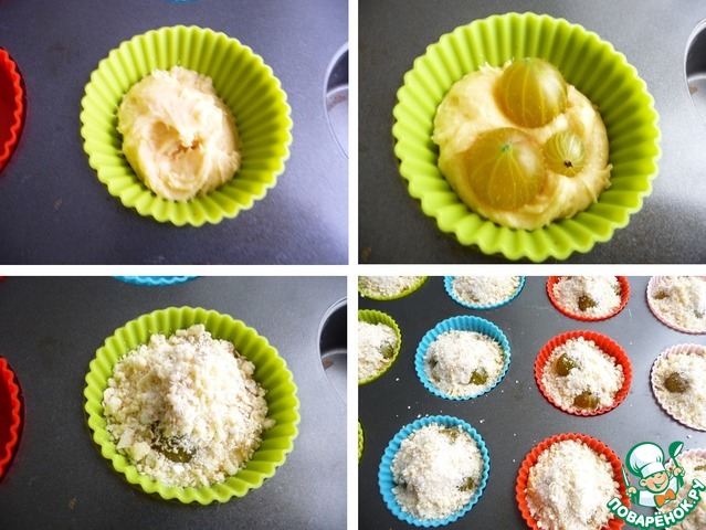 Рецепт «Маффины с крыжовником и штрейзелем»: