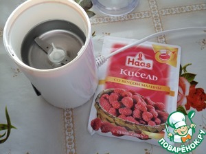 В кофемолку высыпаем содержимое пакетика сухой смеси для киселя. Измельчаем до состояния пудры.