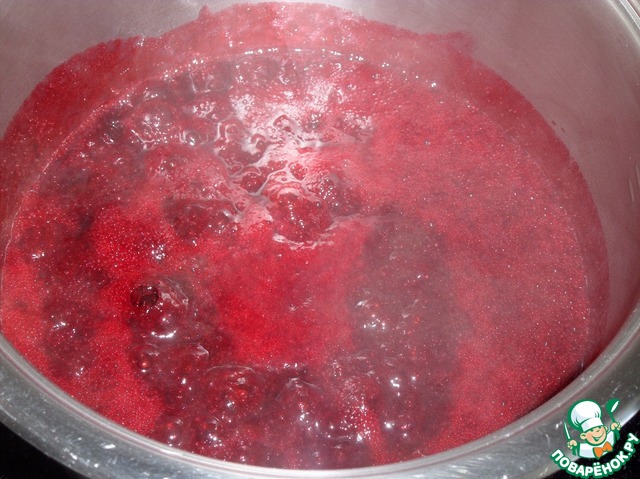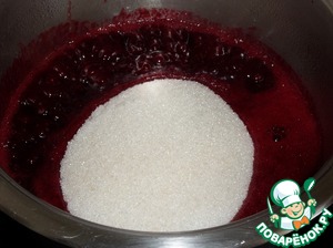 Ягодное пюре переливаем в широкую кастрюлю с толстым дном. Получается 450 грамм ягодного пюре.