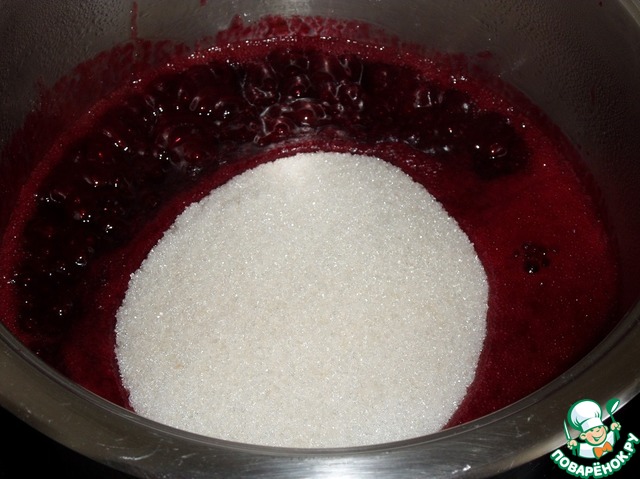 В ягодную массу добавляем 500 грамм сахара и 2 ст. л. лимонного сока.
