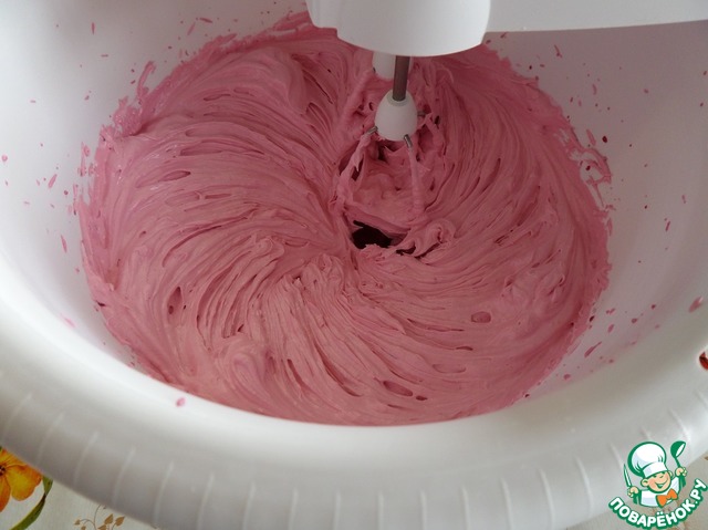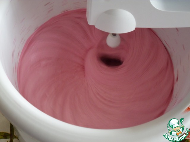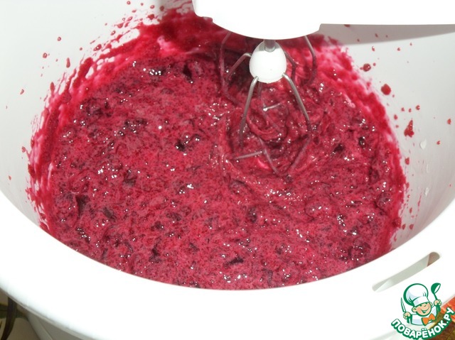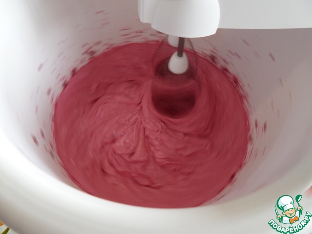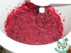 Увеличиваем скорость миксера и продолжаем взбивать ягодную массу.