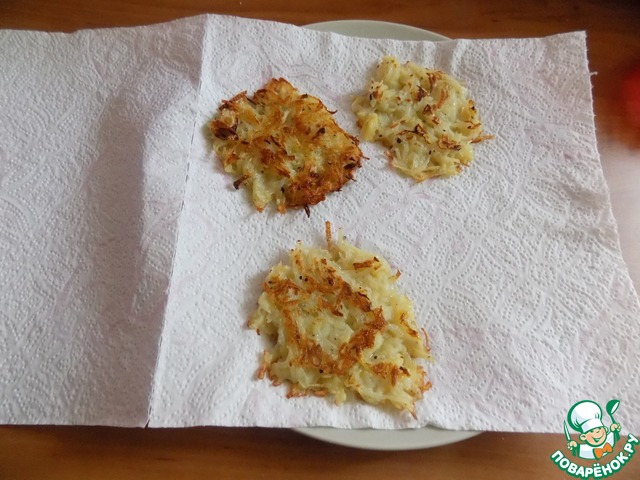 Снимаем на бумажное полотенце, чтобы убрать лишнее масло.