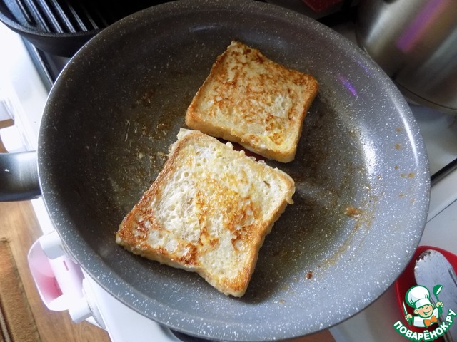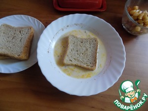 • Пропитываем хлеб с одной стороны в этой смеси.