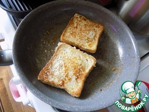 • Выкладываем на сковороду, где обжаривались яблоки с корицей. Жарим тосты до красивого цвета.