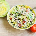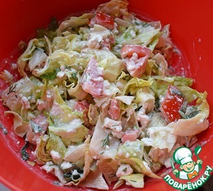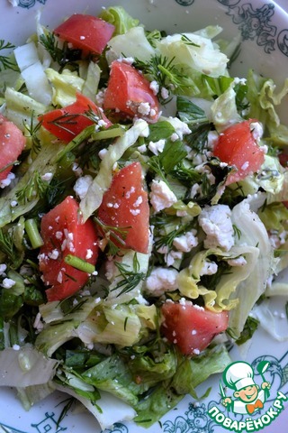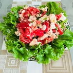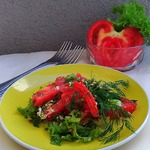 [+5]Использовала салат айсберг, нерафинированное подсолнечное масло; салат не солила; из зелени взяла укроп и зелёный базилик. Салат очень сочный, яркий и вкусный!