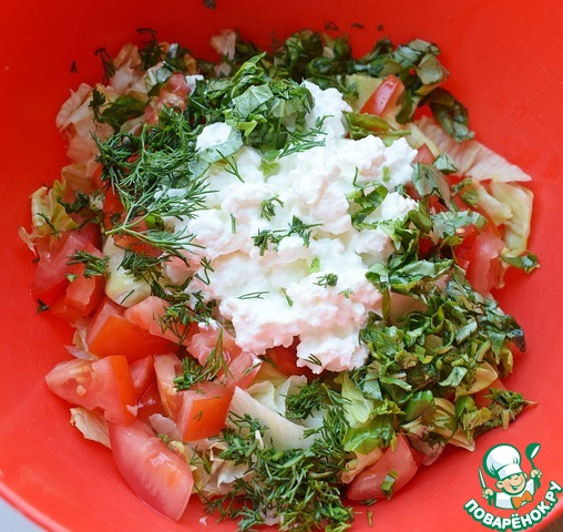 Всё просто: овощи и зелень вымыть, обсушить, нарезать.